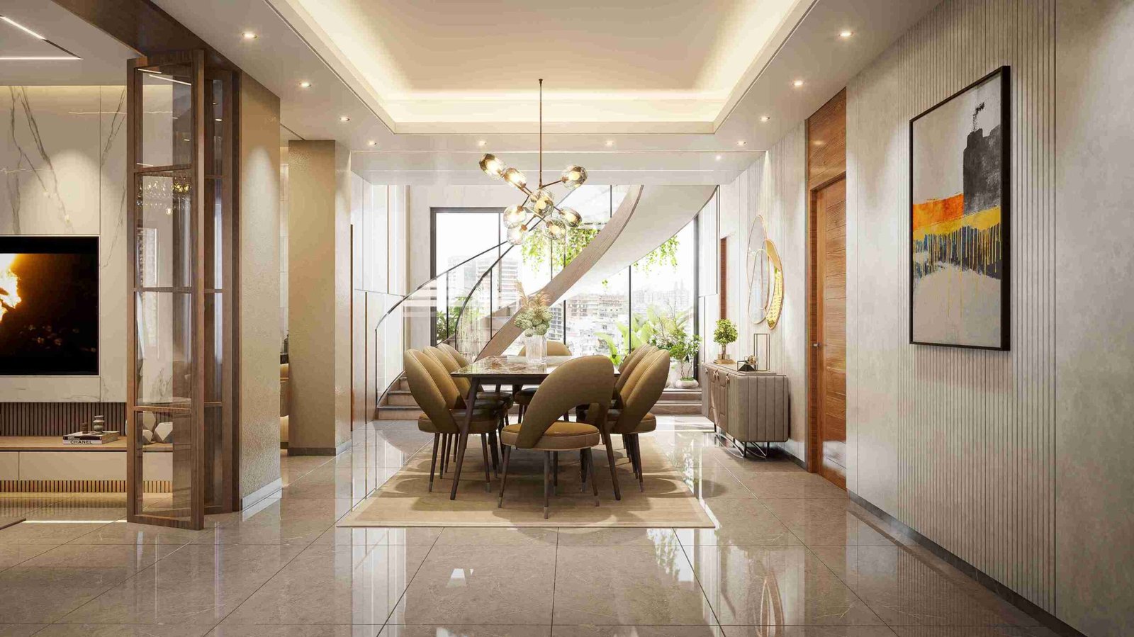 Design Concept The interior design emphasizes open spaces, natural light, and a seamless flow between rooms. Modern aesthetics are enhanced with sleek finishes, neutral palettes, and carefully chosen textures, creating a contemporary yet warm ambiance. Key Features Living Spaces: Elegant and spacious living areas with bespoke furniture and tasteful decor. Kitchen and Dining: A modern […]